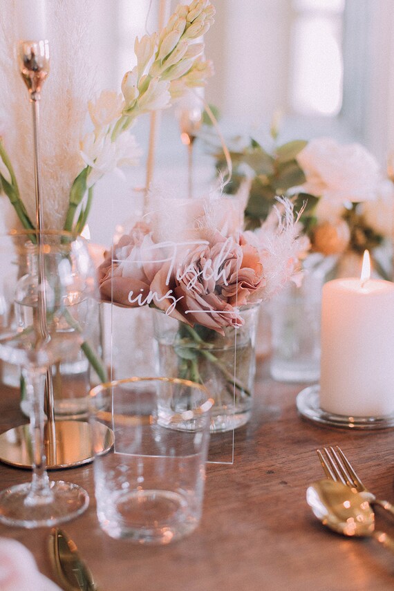 Romantischen vintagehochzeiten verleiht es einen hauch moderne bei rustikalen hochzeiten sorgt es fuer einen gelungenen stilbruch und bei urbanen hochzeitsmottos unterstreicht acrylglas den reduzierten look. Auf den transparenten acrylbloecken wirkt die tischnummer nahezu schwebend. Preis variiert je nach stueckzahl. Einer der hochzeitstrends der sicher bleiben wird ist acryl.