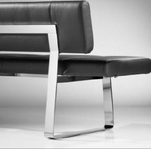 Ein metallkufengestell fasst die hochwertigen polsterelemente der mirado sitzbank effektvoll zusammen.