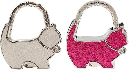 Tisch Tasche Handtaschenhalter Strass Katze Schwarz Silber