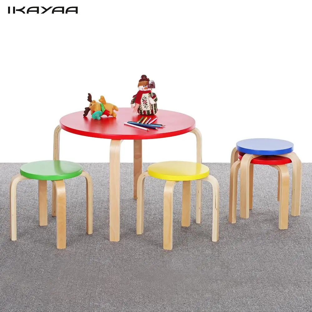 Ikayaa Uns Lager Kinder Tisch Stuhl Set Holz Runde Kinder Tabelle