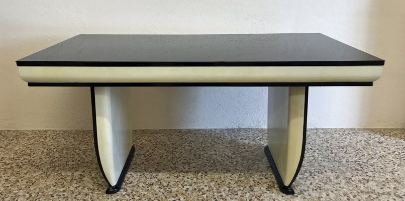 Italienischer Tisch Im Art Deco Stil Mit Schwarzer Glasplatte