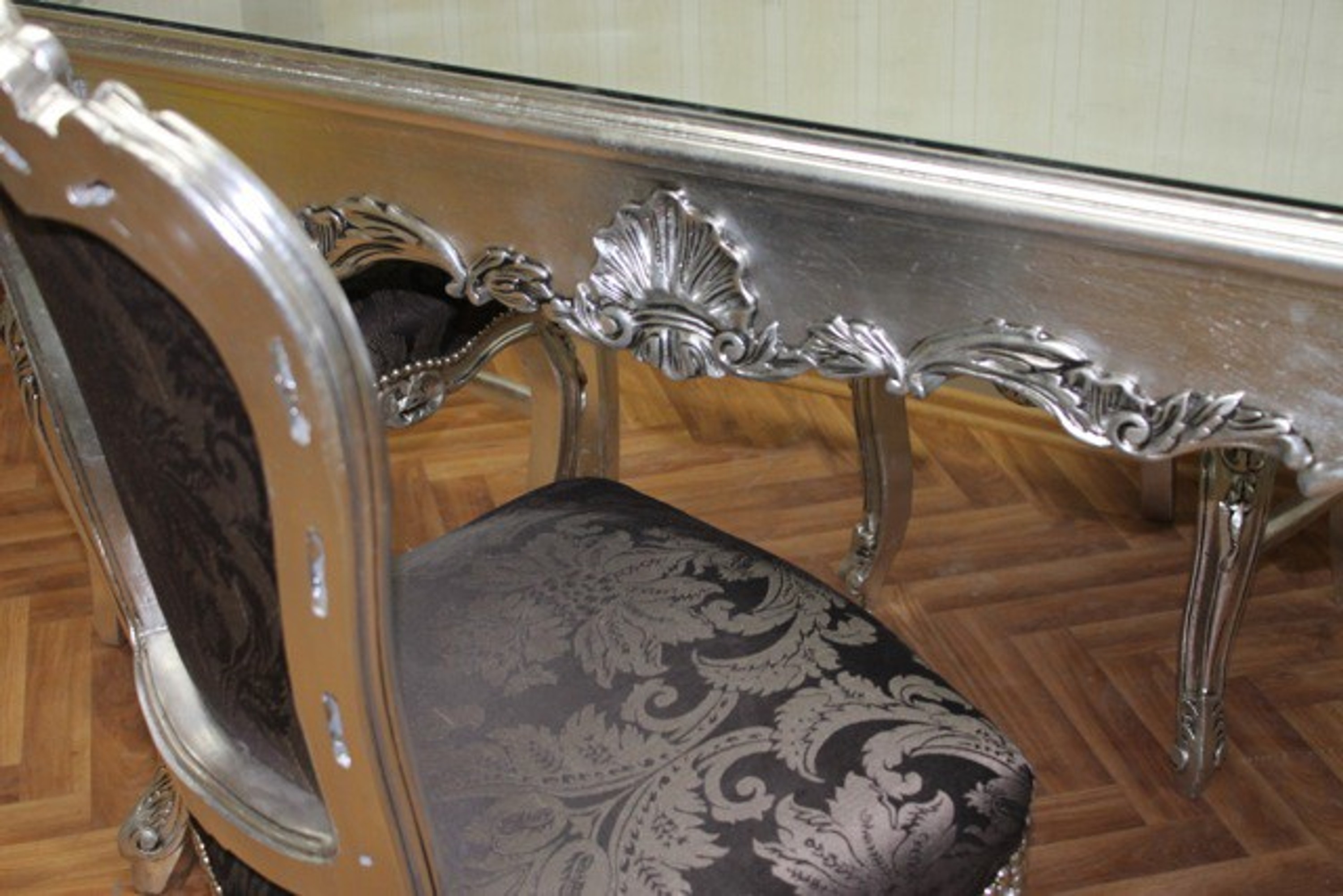 Barock Esszimmer Tisch Silber Schwarz Antik Stil Ales0690si1 2
