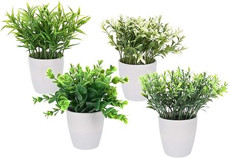 Spetebo Kunstpflanze Im Weissen Blumentopf Klein 4er Set Tisch