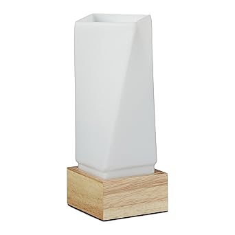 Relaxdays Tischleuchte Milchglas Prisma Form Holzsockel Klein