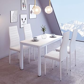 Amazon De Esstisch Und Stuhle Holz Weiss 4 Stuck Und 4 Schwarze